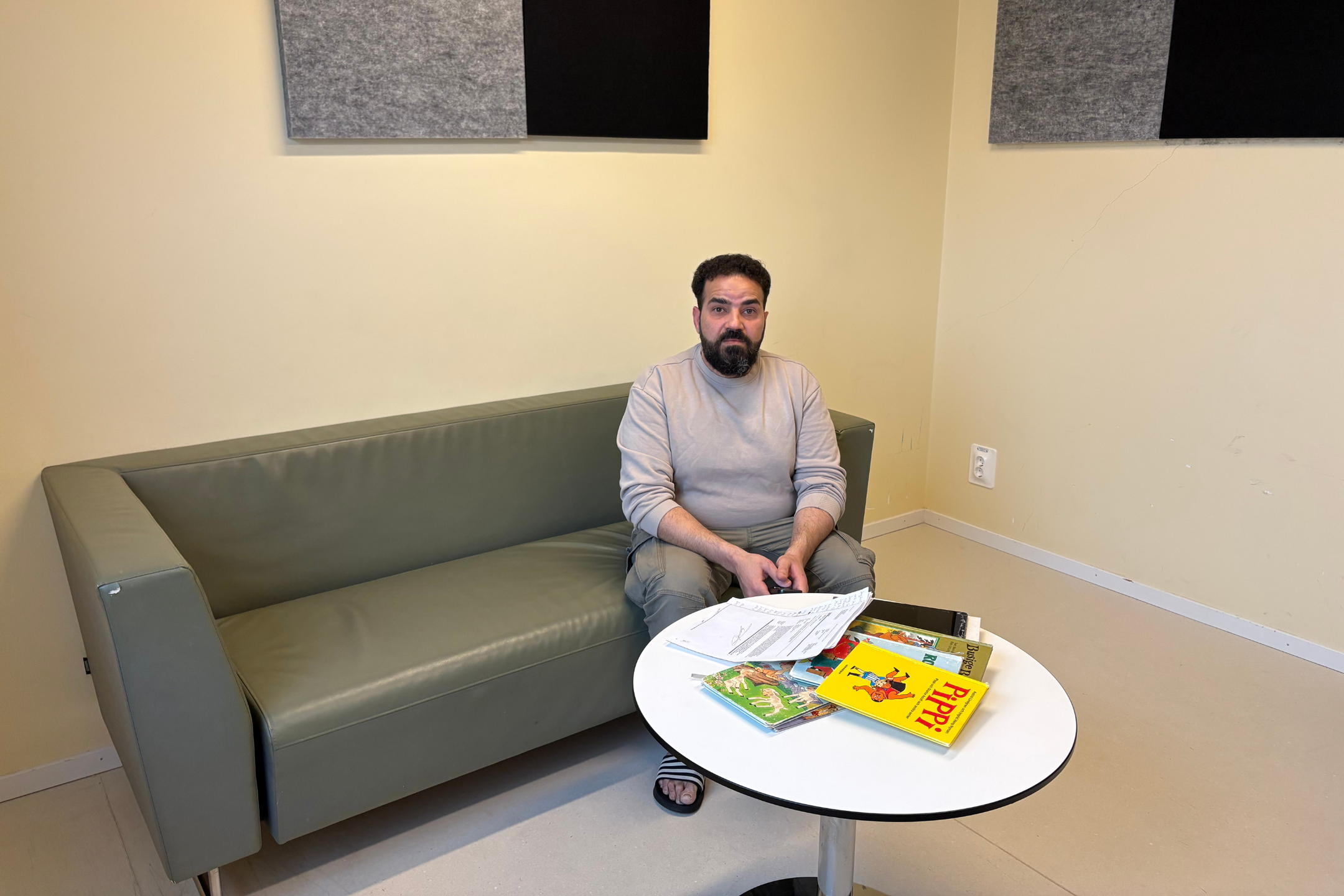 Ahmed Mohammed håller sin ena hand hårt över den andra och lutar sig lätt framåt, där han sitter på den gråa plastiga soffan i besöksrummet. Han får anstränga sig för att få ut orden, kniper med ansiktsmusklerna när han talar. Det är som att det kryper i kroppen på honom.
