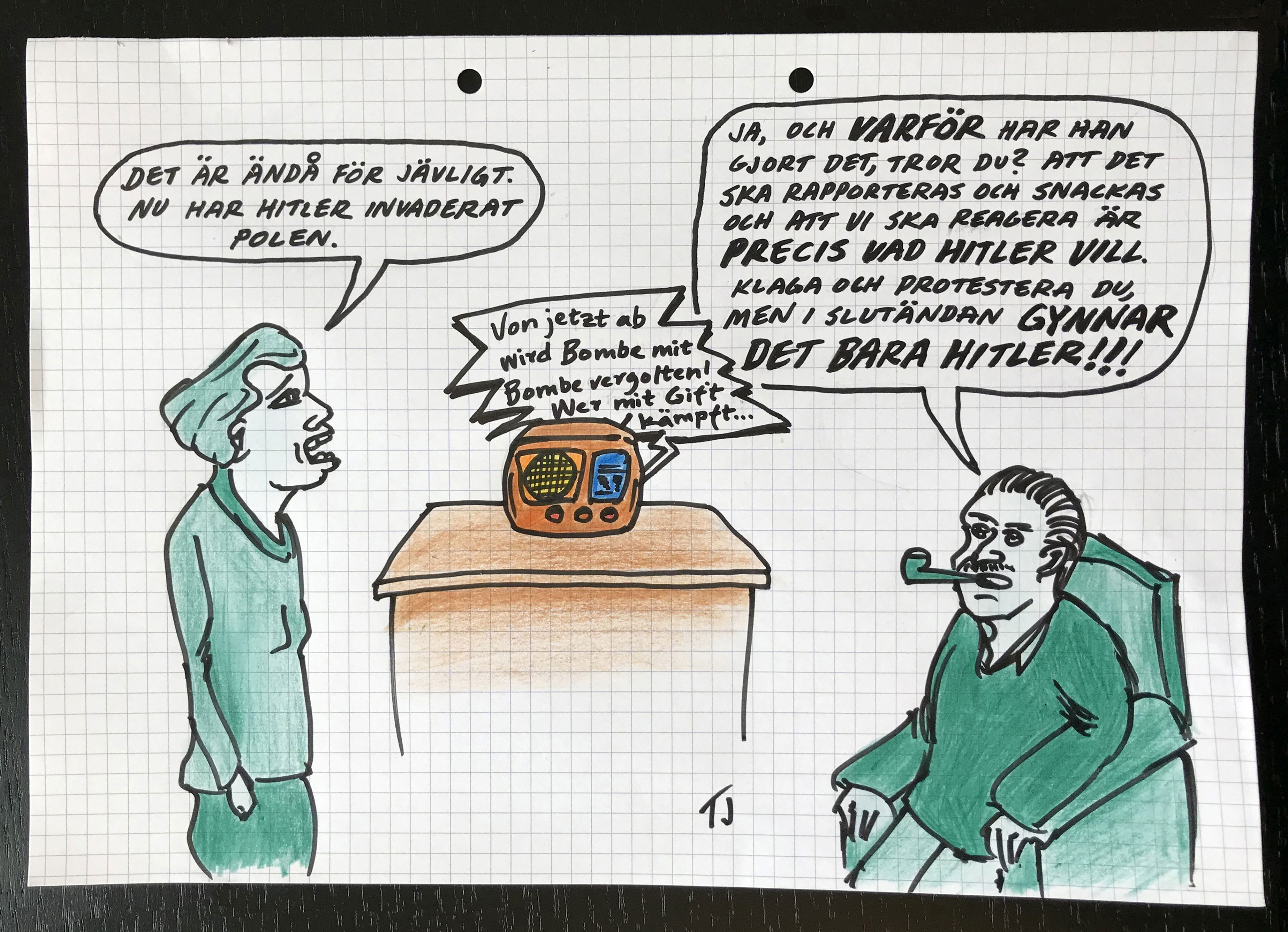 ”Det gynnar bara Hitler”. Illustration: Toivo Jokkala