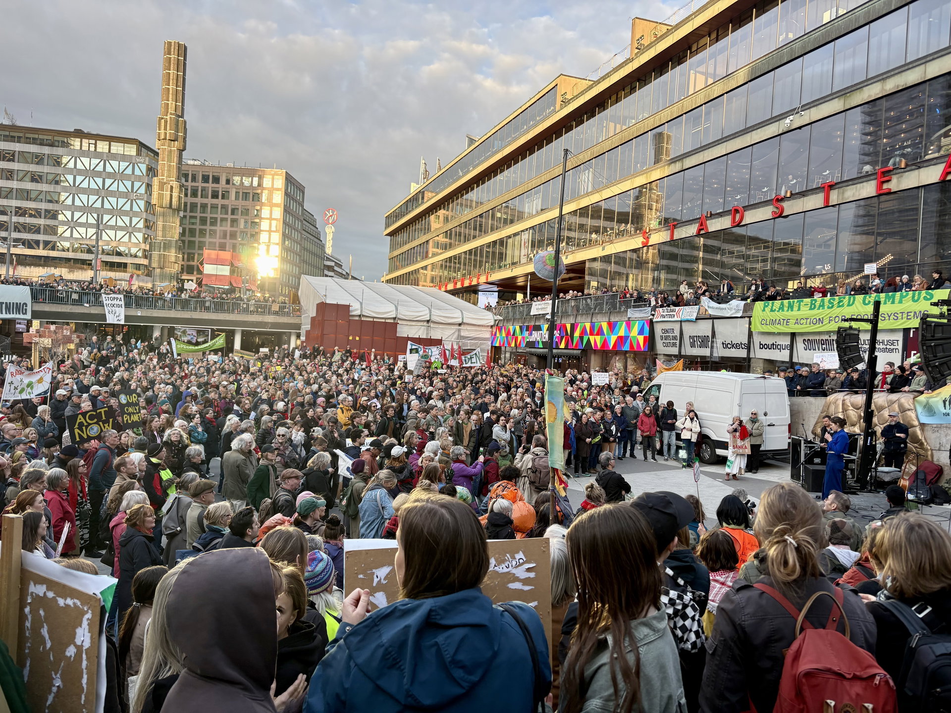 Det finns en tidsfaktor när det gäller klimatkrisen – och tiden är ute. Vi har passerat tröskeln för alla världens korallrev, de är förlorade. Vi är oerhört nära flera andra, helt avgörande, tippningspunkter. Bland annat finns en risk för abrupt thaw, plötslig upptining, av permafrosten. När den tinar sätts processer igång i marken som leder till utsläpp av stora mängder nya växthusgaser – det blir ännu varmare. Avsmältningen av isarna på Grönland och i Västantarktis ligger enligt forskarna sannolikt vid omkring 1,5 graders uppvärmning. Tillsammans kan de ge en långsiktig havsnivåhöjning på över tio meter. Jag repeterar: TIO METER.