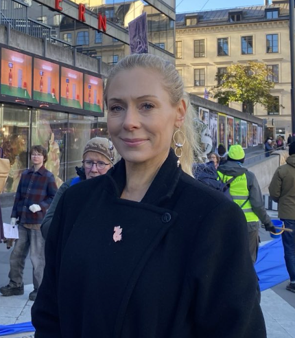 En av demonstranterna på plats i Stockholm är den tidigare Robinsondeltagaren Amanda Eliasson från just Sällsjö.