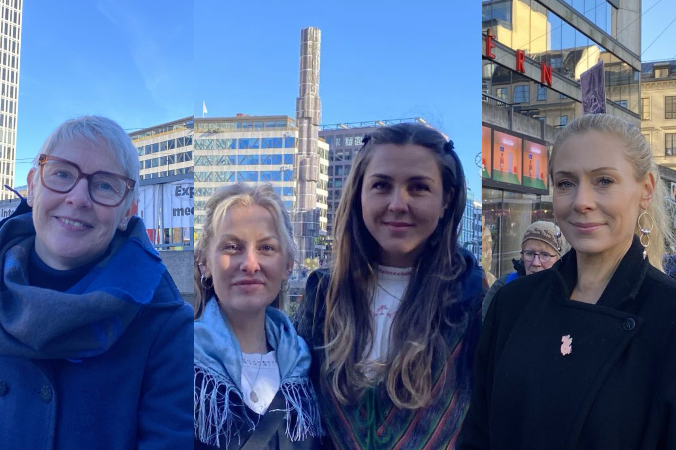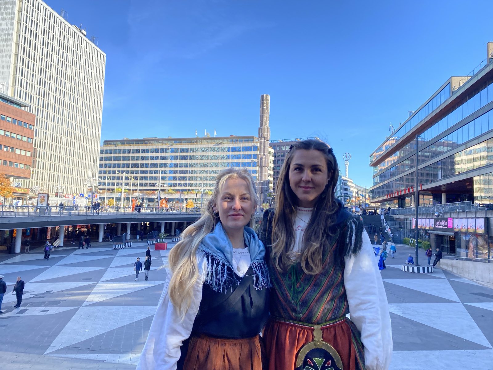 Karin Blomqvist Bringsaas och Amanda Eliasson efter demonstrationen på Sergels torg, innan tåget till Mynttorget. Foto: Vendela Engström
