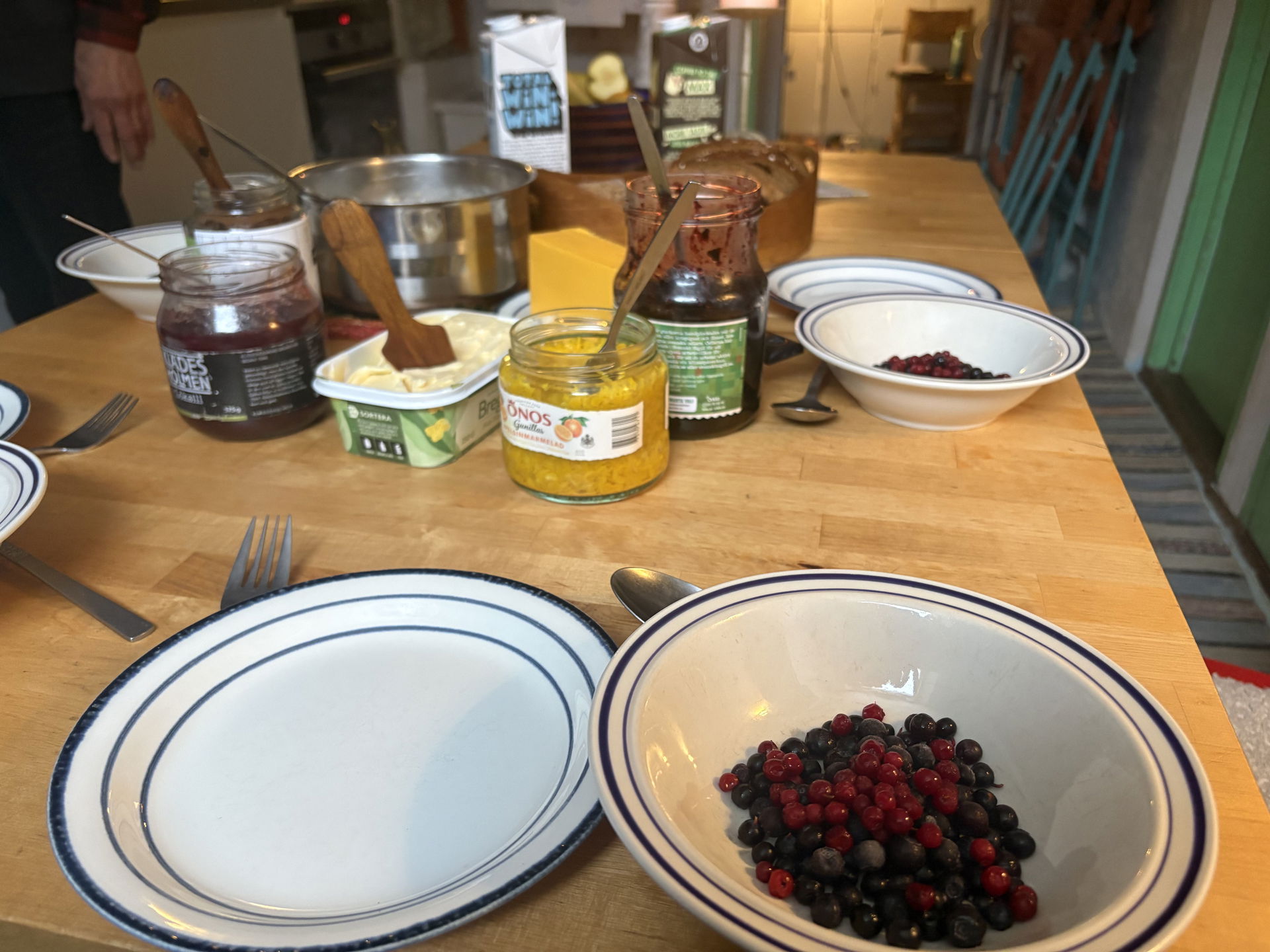 Nu bjöds vi på gröt, hemsyrad gyllenkål (med gurkmeja och ingefära), chokladhummus (!) och Anders hembakta fröbröd.