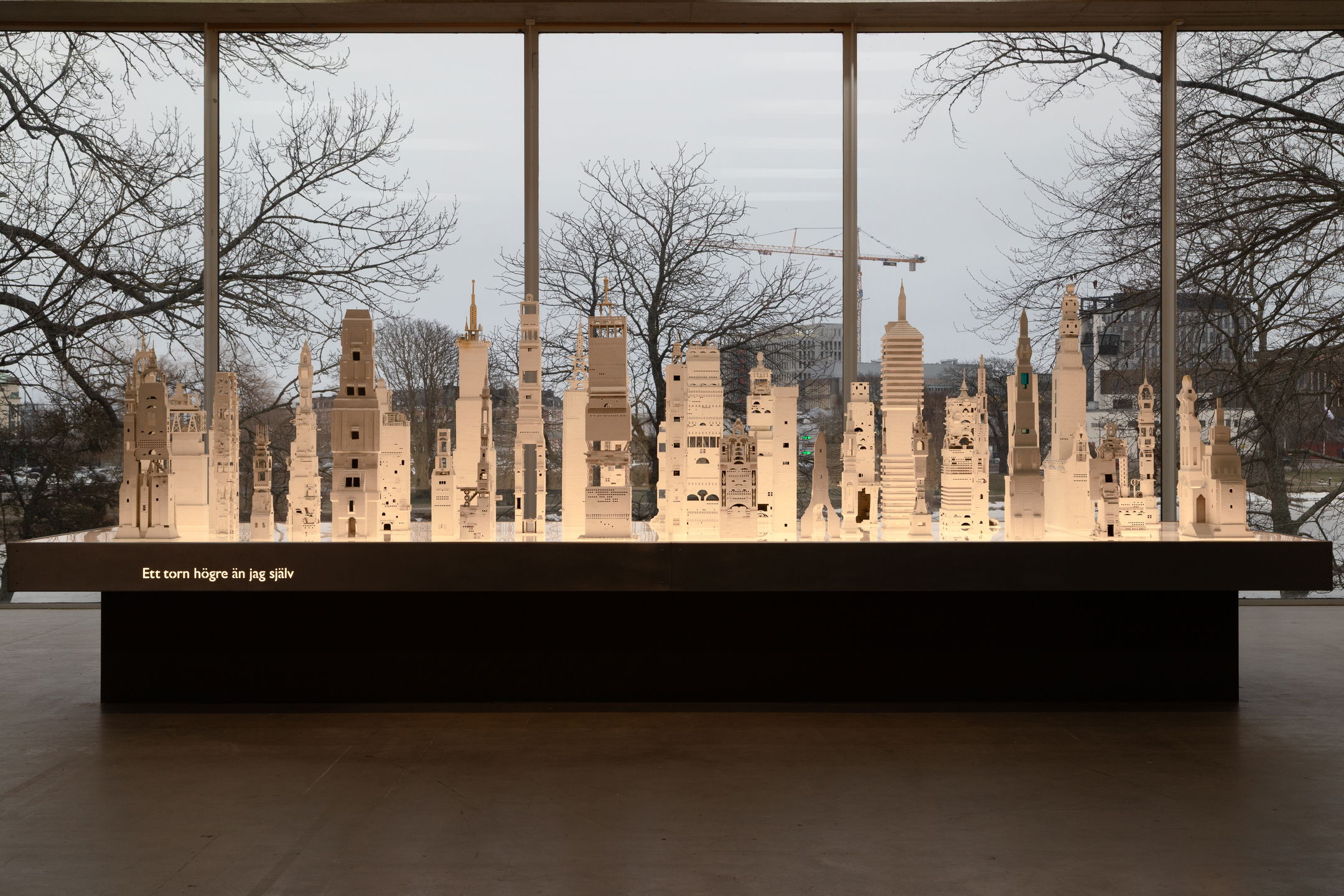 Skulpturen Ett torn högre än jag själv, byggd av sex interner på Kalmar anstalt, tillsammans med konstnären Magnus Bärtås. Foto: André Lindahl