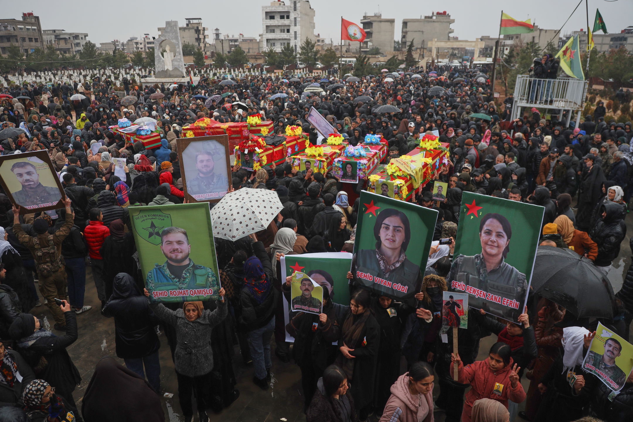 Begravning i Qamishli för kurdiska soldater tillhörande SDF som omkommit i samband med striderna i Syrien. Foto: Baderkhan Ahmad/TT