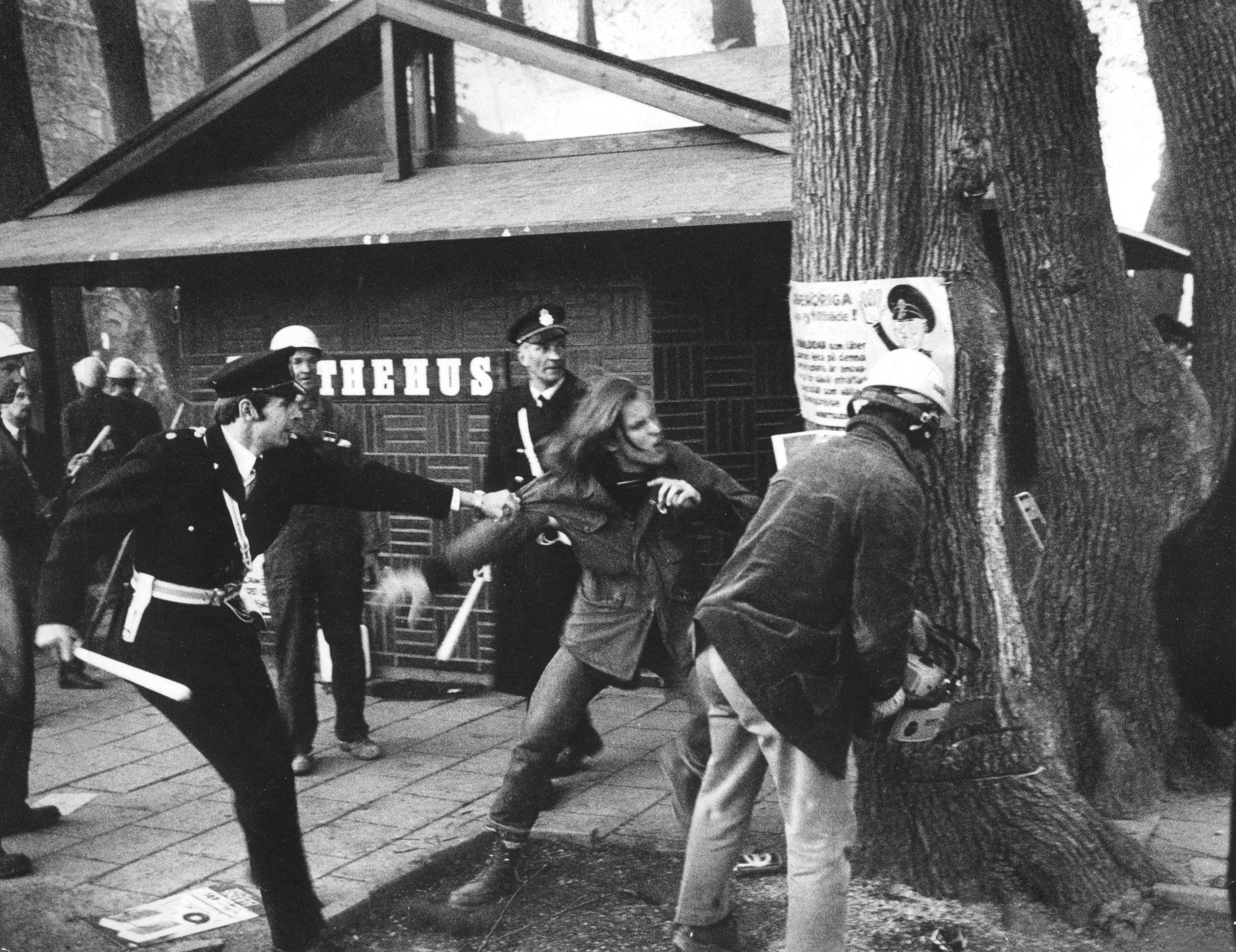 Bild från Almstriden i Kungsträdgården den 12 maj 1971. Foto: TT