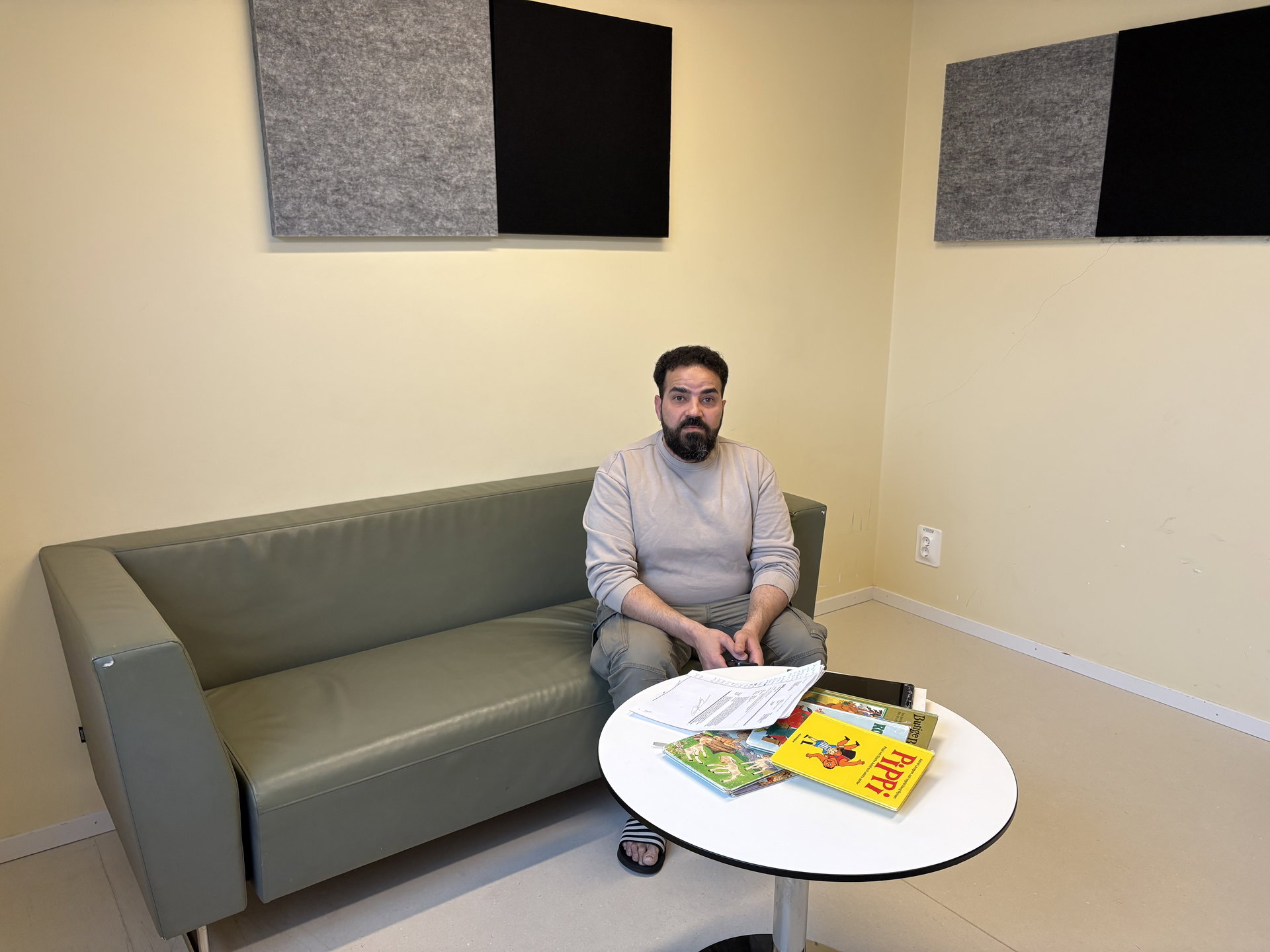 Ahmed Mohammed håller sin ena hand hårt över den andra och lutar sig lätt framåt, där han sitter på den gråa plastiga soffan i besöksrummet. Han får anstränga sig för att få ut orden, kniper med ansiktsmusklerna när han talar. Det är som att det kryper i kroppen på honom.