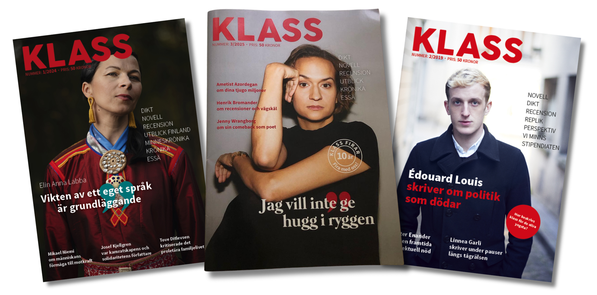 Tidskriften Klass ges ut av Föreningen Arbetarskrivare för att lyfta fram arbetarlitteratur och litteratur med klassperspektiv. Tidningen innehåller storslagna noveller & poesi, djuplodande författarporträtt, tänkvärda essäer, klargörande recensioner och bitska krönikor. Genom reportage, kritik, samtal och debatt för tidningen fram viktiga frågor och litteratur i ljuset. Klass kommer ut med en tryckt tidning 4 gånger per år.