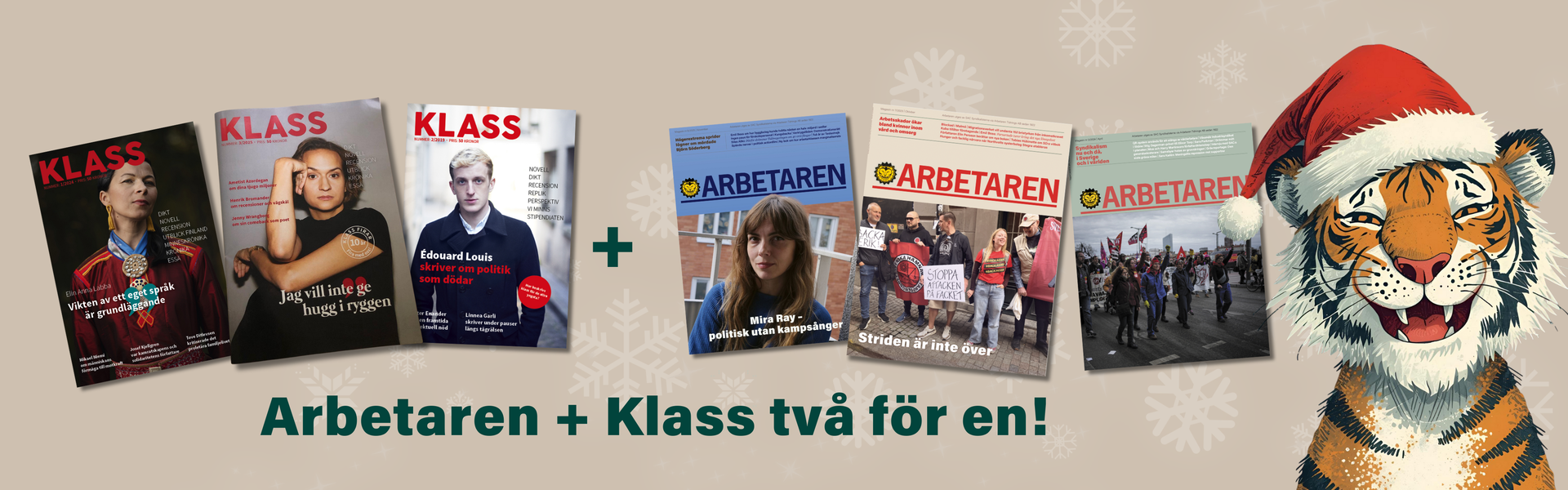 I år har vi ett riktigt supererbjudande till dig som vill prenumera! När du tecknar en årsprenumeration på Arbetaren (ordinarie pris 828 kr) så får du ett års prenumeration på vassa tidskriften Klass (ordinarie pris 250 kronor).